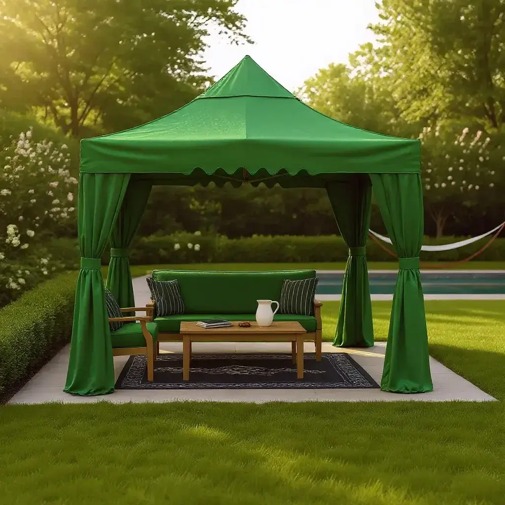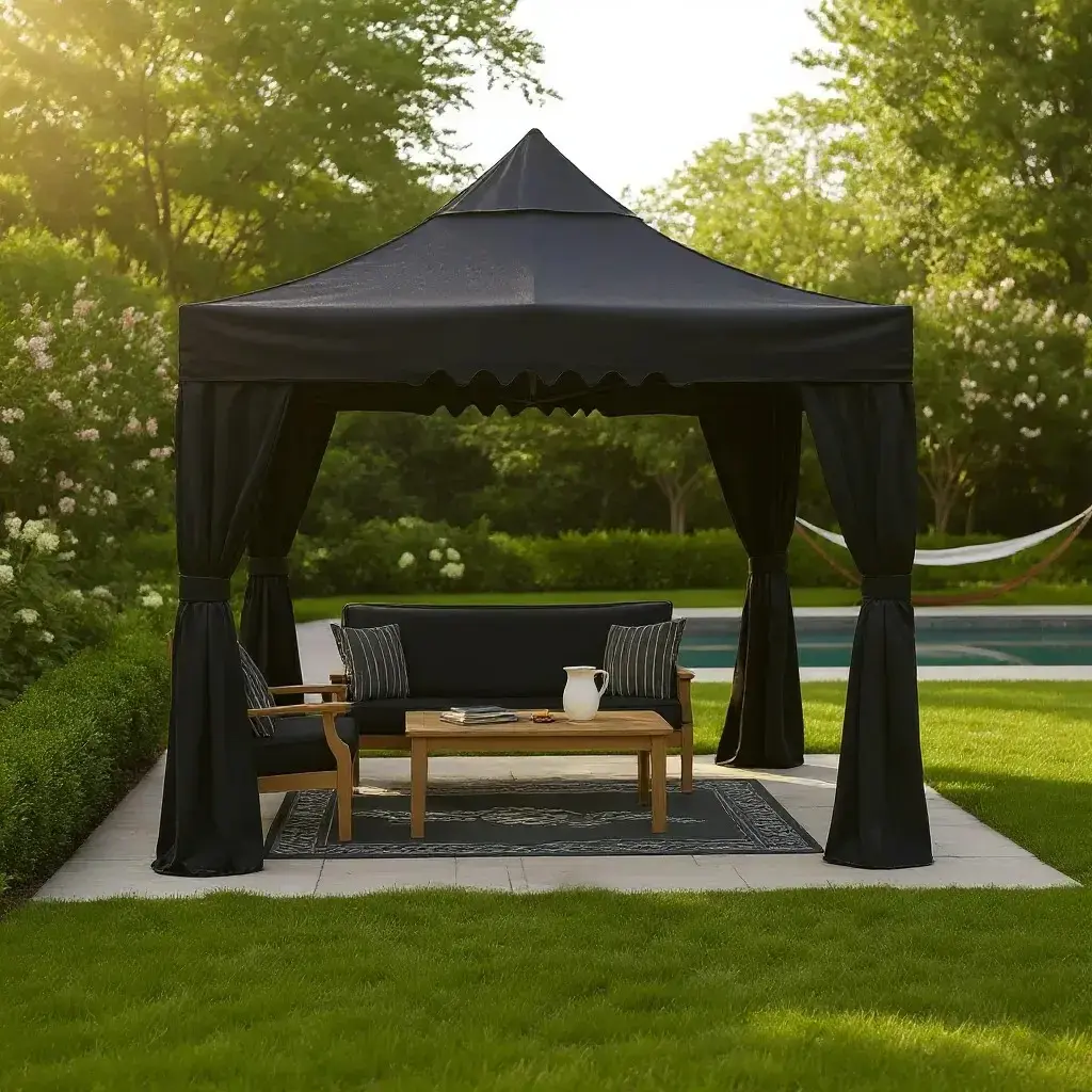 Aura Garden, 3x3 m ölçülerinde dış mekân kullanımına özel dekoratif ve işlevsel bir bahçe çadırıdır. Hem özel yaşam alanları hem de ticari işletmeler için gölgeleme, koruma ve ambiyans sağlar.